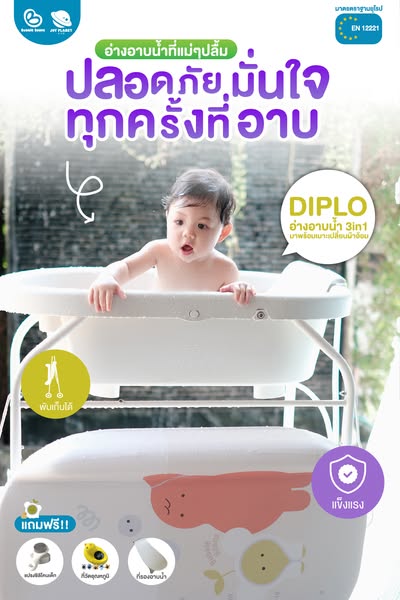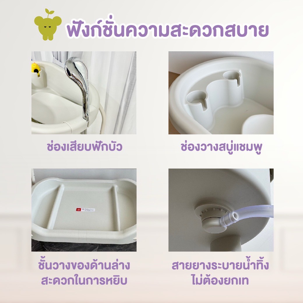 “ช่วยให้การอาบน้ำลูก...กลายเป็นช่วงเวลาที่มีแต่รอยยิ้ม” ปรับใช้ได้ตามต้องการ วางในอ่างอาบน้ำ / ว่างในอ่างล้างหน้า / วางบนพื้นห้องน้ำ