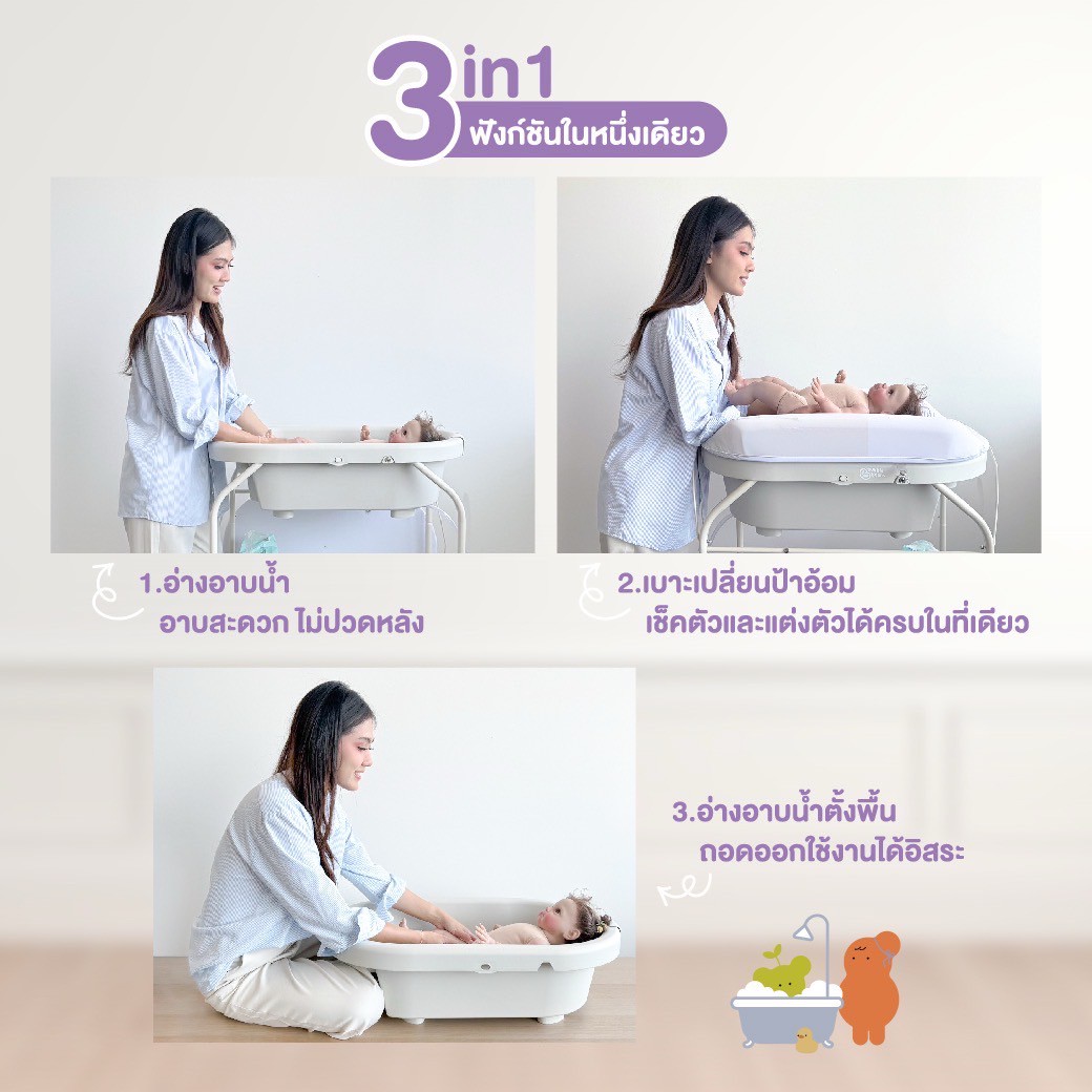 อาบน้ำลูก...ง่ายขึ้นอีกขั้น! "สะดวก สบาย ไม่ต้องก้มอาบ ใข้งานได้ 3 รูปแบบ อ่างพร้อมขาตั้ง อ่างอาบน้ำแบบวางพื้น / พับเก็บได้ มีที่วัดอุณหภูมิ